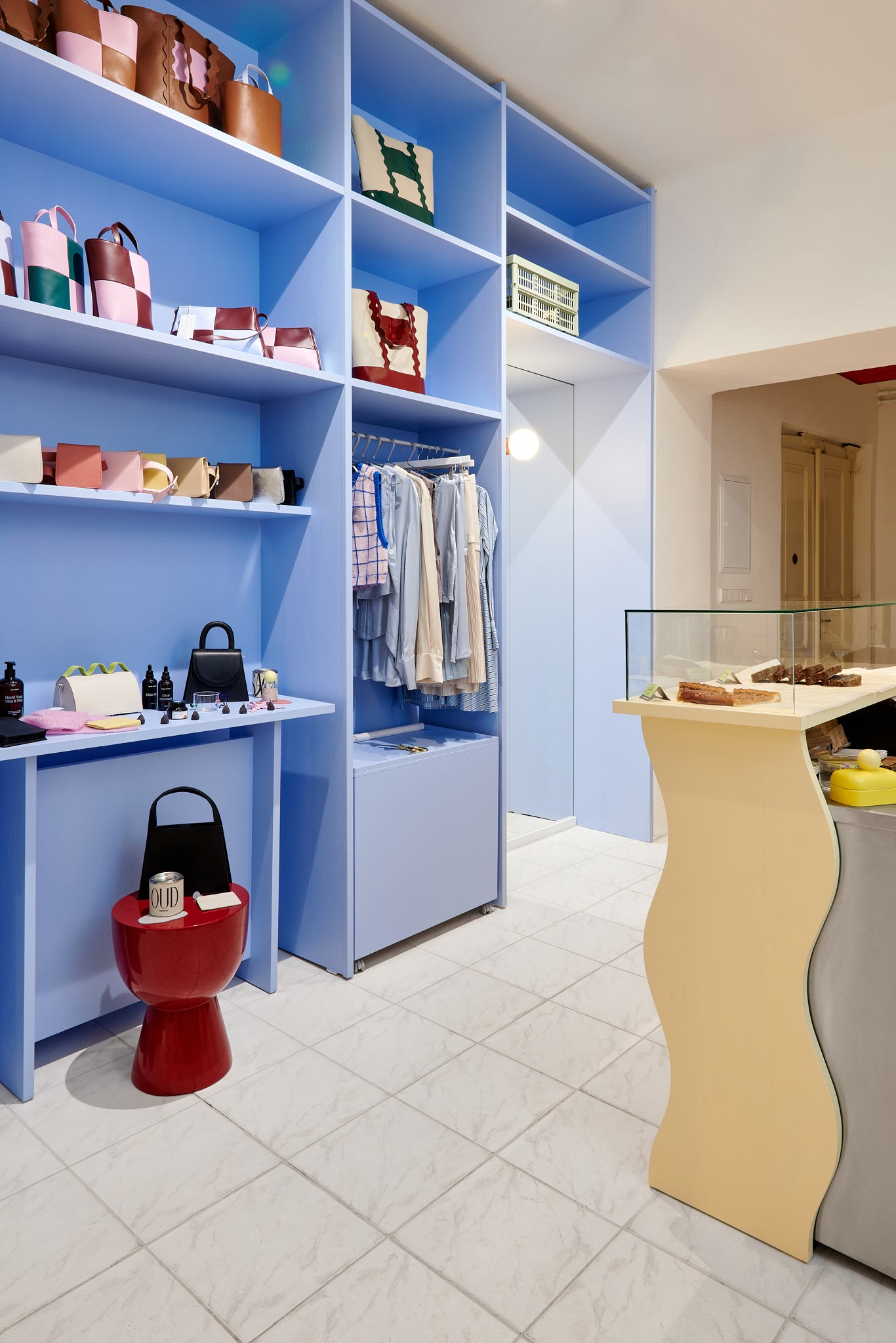 VíceMísto, kde se snoubí moderní český design s výběrovou kávou. Vysněná představa se stala realitou. Na jedné straně stěna plná produktů z kolekcí kabelek a peněženek a v druhé části espresso bar.