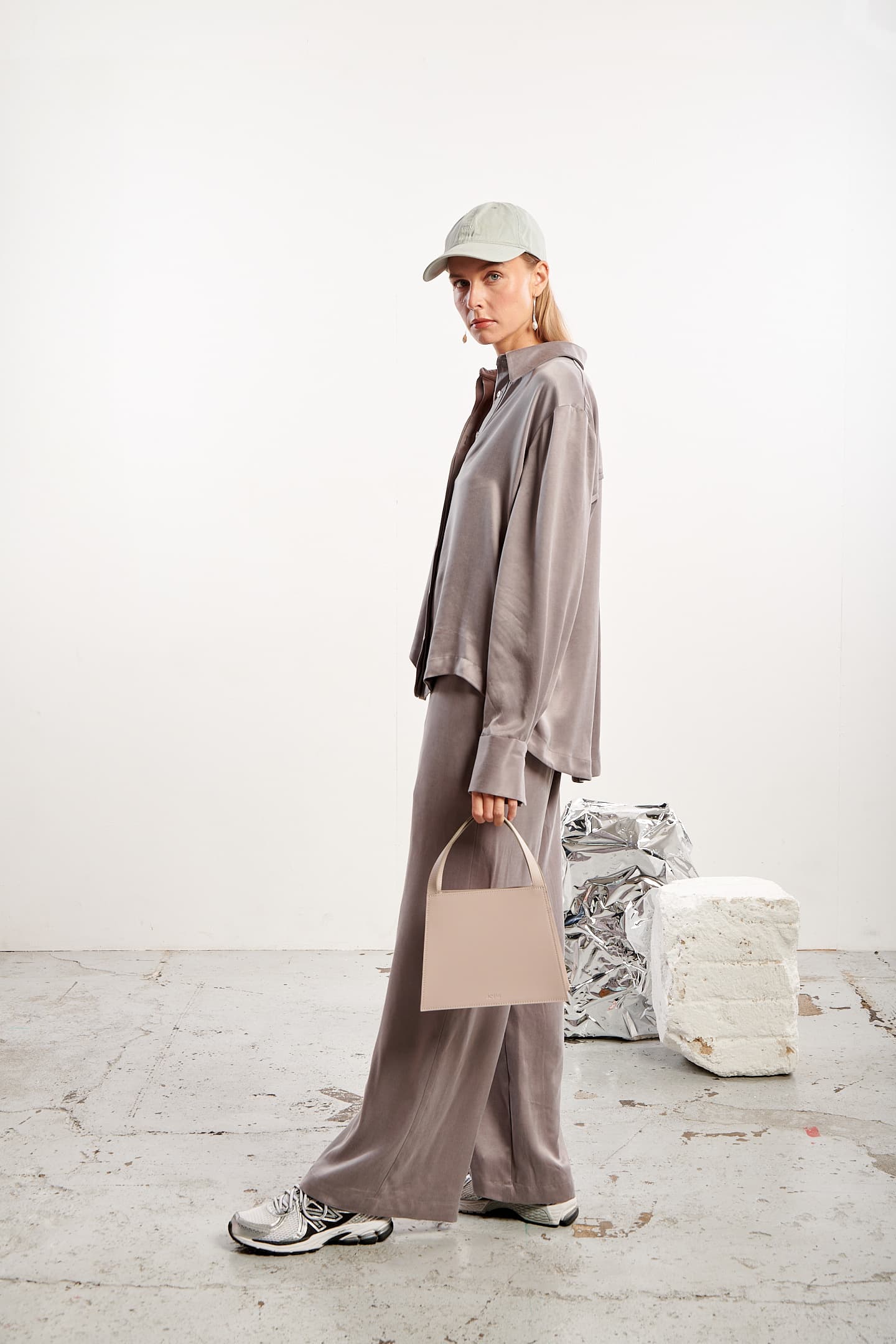 Oversize trousers and shirts in three colors made from a blend of Cupra copper Ecovero viscose with a very pleasant surface.