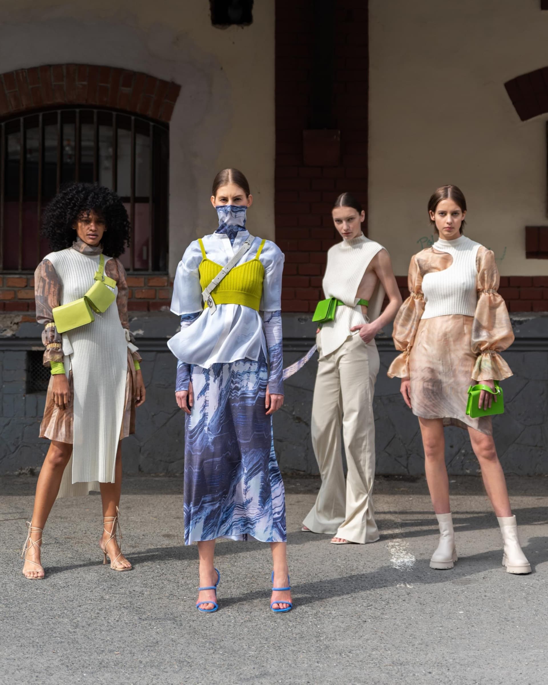 The Re-start collection was presented at MBPFW 21 in the VAN GRAFF JUNIOR TALENT category. It disrupts the beige trend and the austerity of quarantine fashion. He draws inspiration from the Bridgerton series from the Regency period, which, unlike today, did not suffer from a lack of social events. She was created for joy.