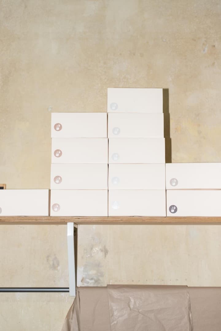 The product arrives packed in custom-made boxes for us. So that unpacking products can be a bit of an experience. We wrap everything in paper and avoid plastic.