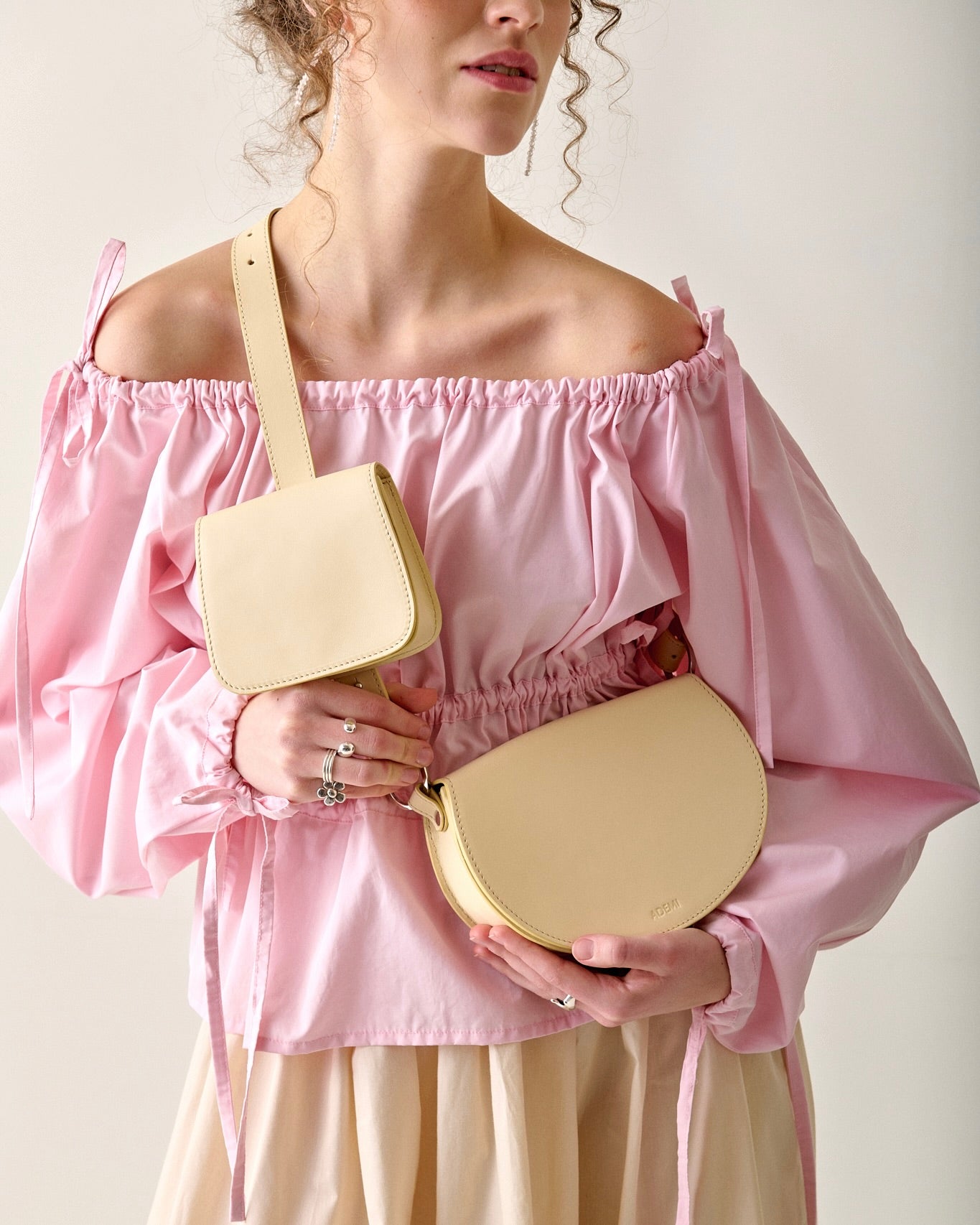 When designing handbags, variability was important to Ademi, so that the handbag could be used as much as possible. That's why, for example, a waist bag can be made into a shoulder bag. But there are countless wearing options, it's up to you which one you choose.